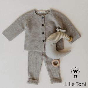 Sanfte Naturtöne, 100% mulesingfreie Merinowolle und cleverer Strick, der über mehrere Größen mitwächst.